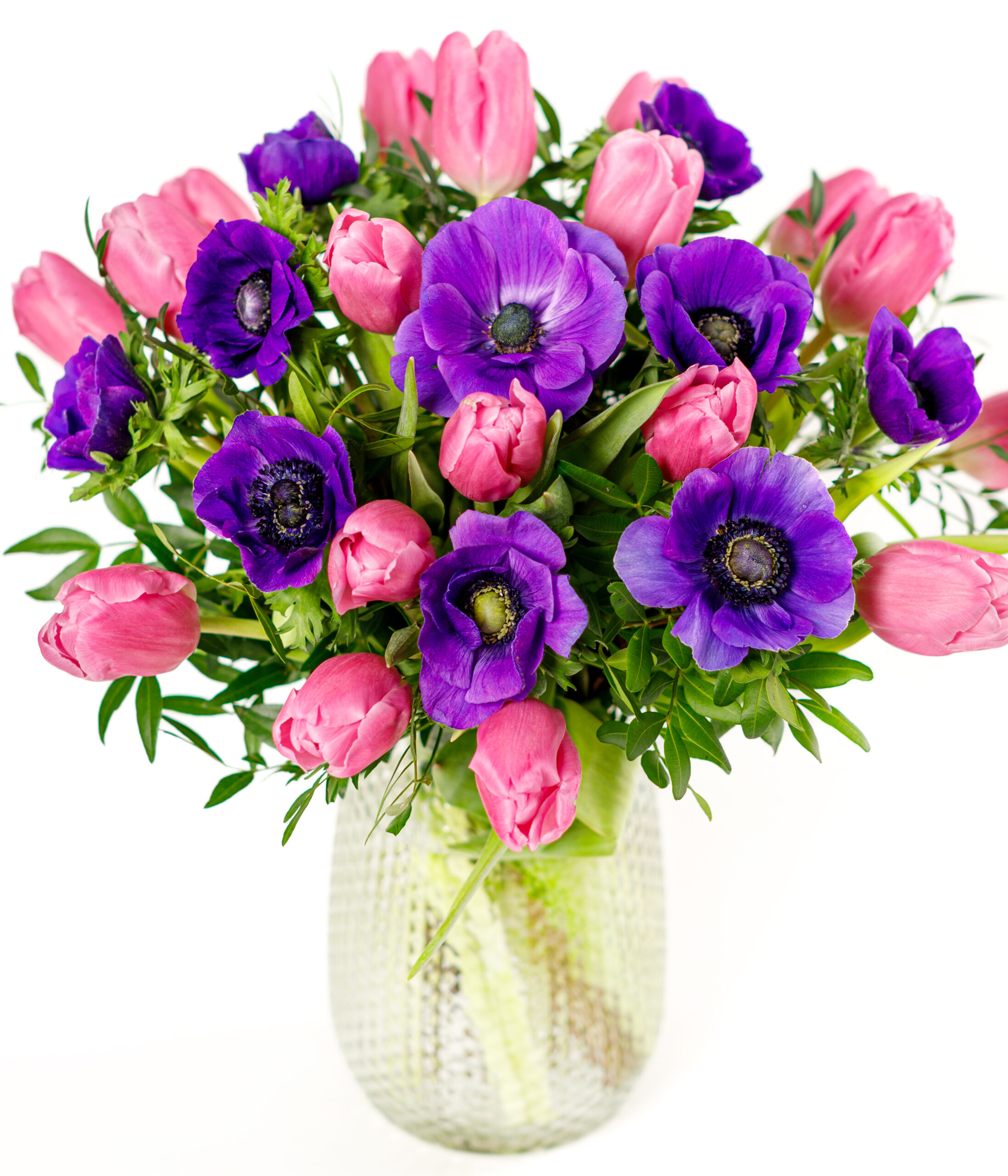 Beautifully paired blue anemone and pink tulips, create this Mother’s Day bouquet which will sure be cherished. Sent in an Eflorist box designed to protect the stems and provide a pleasant unboxing experience. The flowers arrive in bud, and with just a splash of water and our included flower food, the blooms will gradually open up within two days. And with tracked delivery, you can track the progress of your special bouquet, knowing exactly when it reaches your loved one. Send big emotions this Mother’s Day with a small price tag.